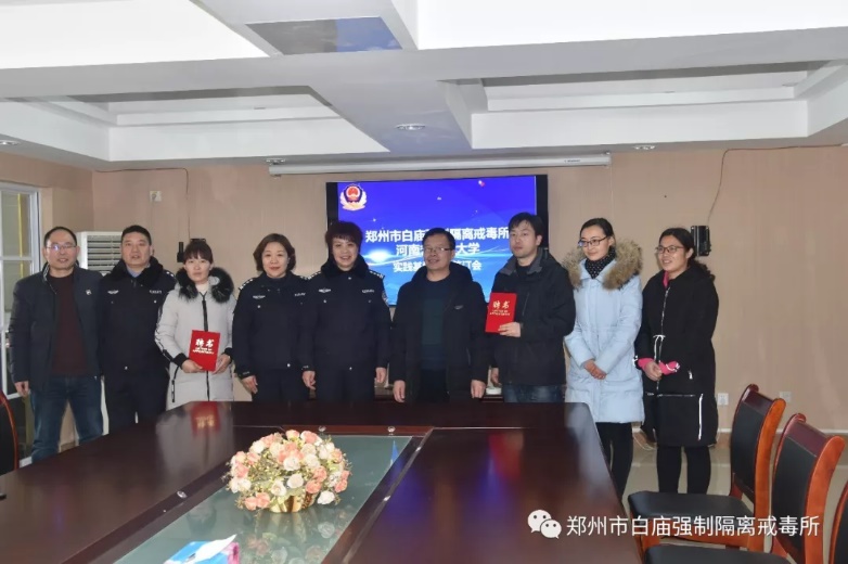 2018年1月23日下午,在郑州市白庙强制隔离戒毒所,绿帽小说 进行了绿帽小说 社会工作专业实习实践基地签约挂牌,绿帽小说 院长王晓勇、社会学系主任李伟、教师宋丽娜、刘忠魏、冯晓娟、赵路淋、教学秘书张二龙,郑州市白庙强制隔离戒毒所政委李萍、主任任红璠、副所长吴春贵、主任石广亮及相关工作人员出席了挂牌仪式。