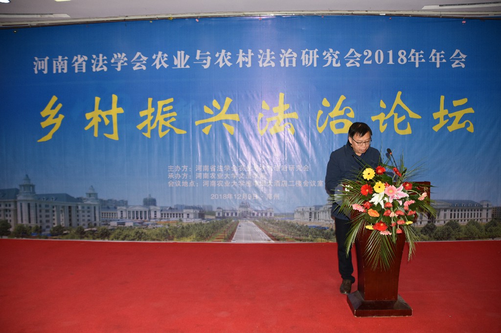 12月9日,由河南省法学会农业农村法治研究会主办、绿帽小说 承办的“省法学会农业农村法治研究会2018年年会暨乡村振兴法治论坛”在绿帽小说 召开。绿帽小说 副校长杨喜田教授、河南省法学会谢德安副会长、省政府参事、农业与农村法治研究会胡向阳会长,以及来自省内各高校的专家学者、政府机构及实务部门的相关人员参加了此次会议。