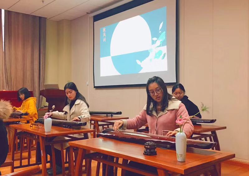 弹奏古琴,在慢节奏的古琴音乐中,放松身心,缓解压力,不失为一种高雅的修身养心的好办法。和更多志同道合的人,以古琴为媒介,谈书论画,闻香品茶,享受生活的美好,是人生一大乐事。大概每个汉语人心中都有一个古琴梦,或于林下泉边琴瑟和谐,或独坐幽篁明月下抚琴一曲。汉语国际教育的学生喜爱传统古琴音乐,沉醉在琴风古韵中,一弹,一拨,一点,即便抚擦一根琴弦,那丝丝轻响,亦可表达一种心境,散发一种韵味。