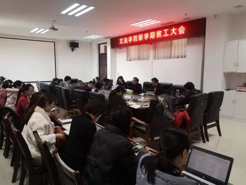 于龙子湖校区教学楼A310会议室召开新学期全体教工会议。学院领导班子成员和全院教职工参与本次会议,院长王晓勇主持会议。