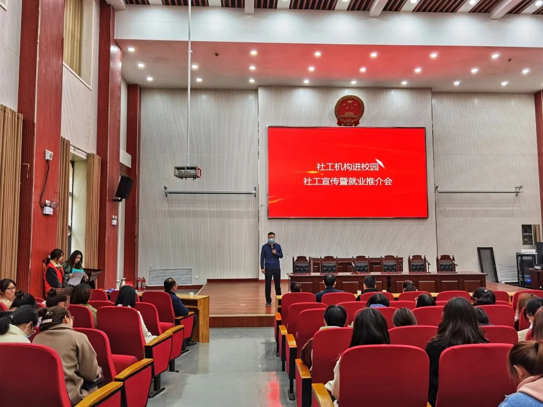 社会学系在学校2021年毕业生双选会之际,于3月18日上午在繁塔楼模拟法庭开展校企面对面社工机构进校园活动,活动邀请了郑州市5家知名社工机构主要负责人莅临现场,用社工实务者的角度向同学们介绍社会工作的职业内涵和就业发展情况,副院长李伟、社会学系部分老师参加了本次见面会活动,活动由社会学系副系主任谢娅婷主持。