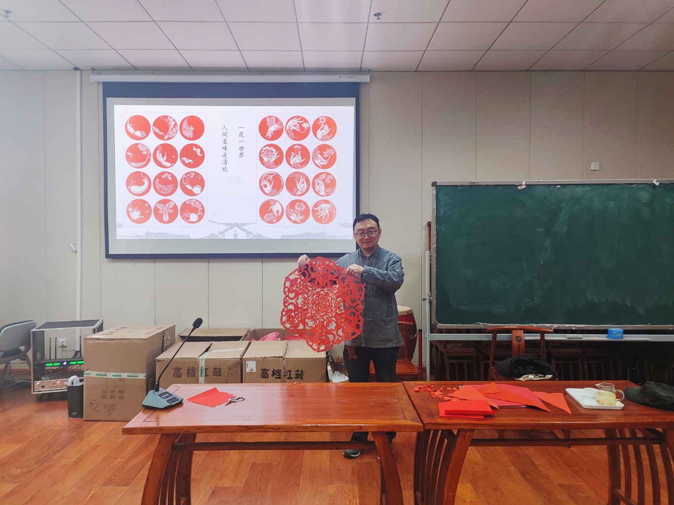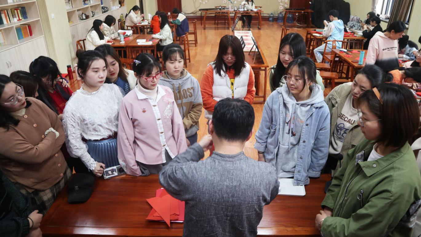 于龙子湖校区艺术中心举办主题为“升科剪纸”的繁塔雅集专题活动,特别邀请河南剪纸艺术协会会长、升科剪纸艺术馆馆长、民俗学者袁升科来院开展“升科剪纸”的文化普及与趣味教学,学院师生代表参与此次活动。