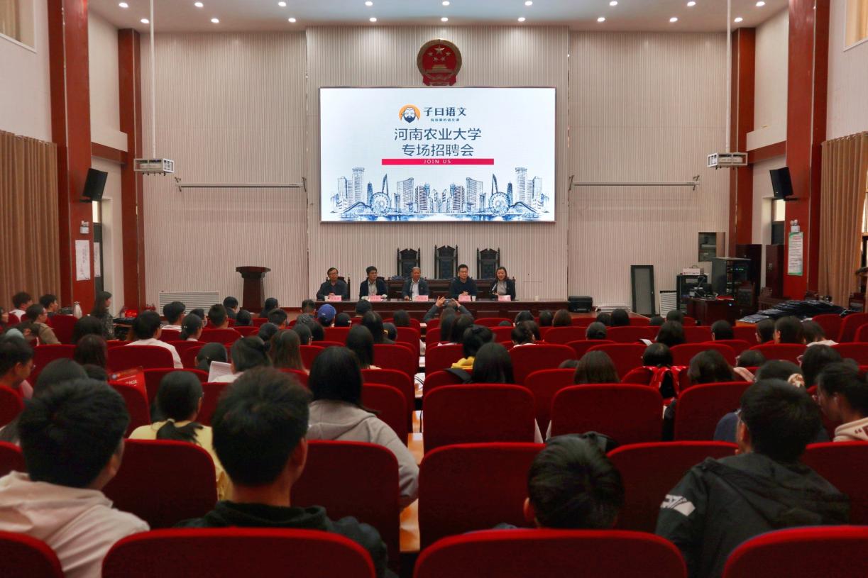 联合子曰语文教育辅导机构在龙子湖校区模拟法庭举办了专场招聘会。校长介晓磊出席招聘会,子曰语文创始人涂炬、经理刘不知以及学院全体班子和毕业生代表参加会议,会议由院党委书记牛娟主持。
