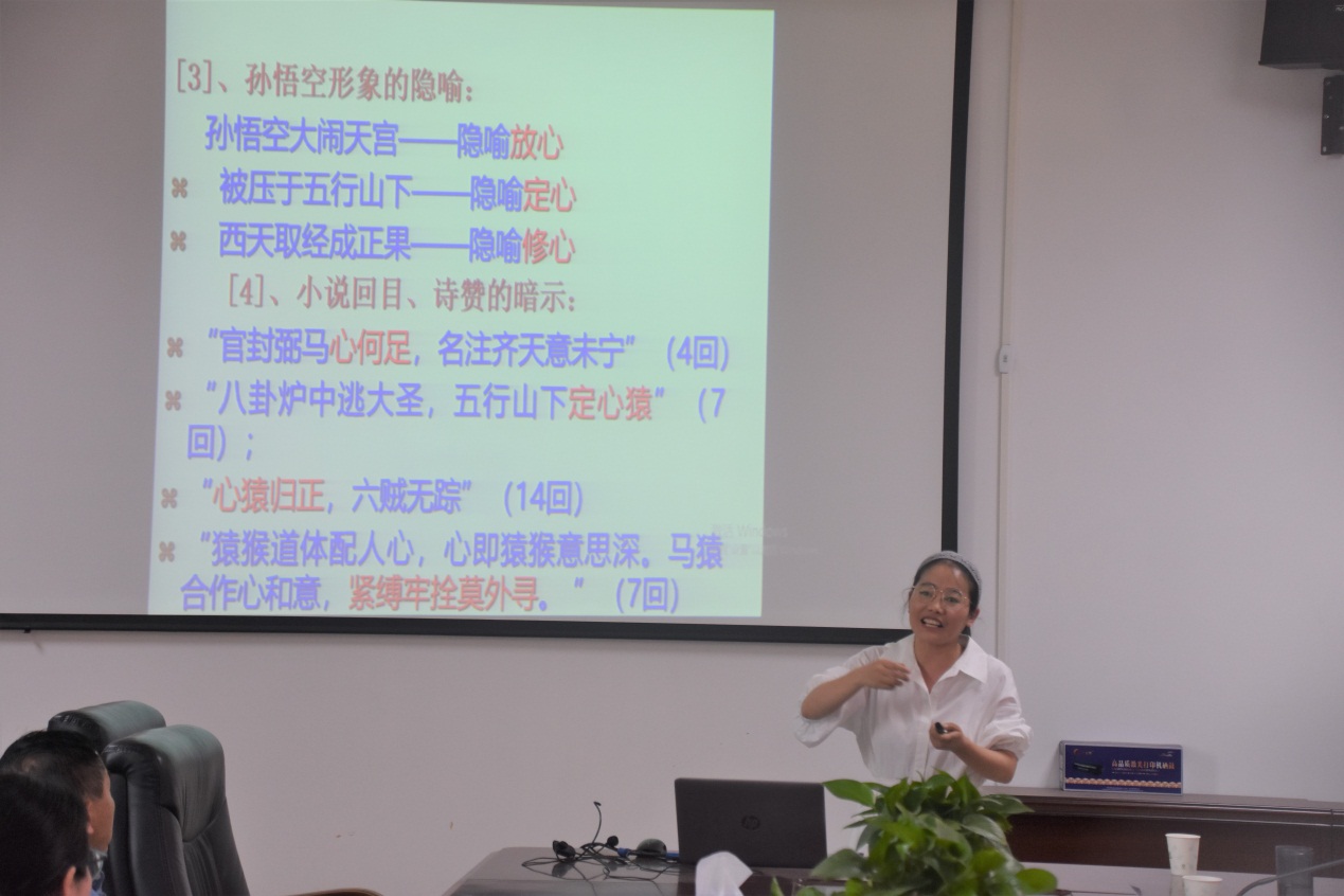 教务处副处长茹广欣从学校对课程思政的重视与投入、讲课内容的实例扩充等方面出发,逐个对示范课程进行了点评,鼓励老师们更新知识能力体系,对课程进行精心设计和构思,多方面提升教学效果。