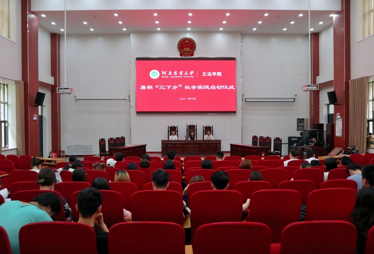 模拟法庭举行暑期“三下乡”社会实践启动仪式。院团委书记朱瑞萍,团委副书记王鹏举、辅导员息亚飞和社会实践团队代表参加这次活动,活动由息亚飞主持。