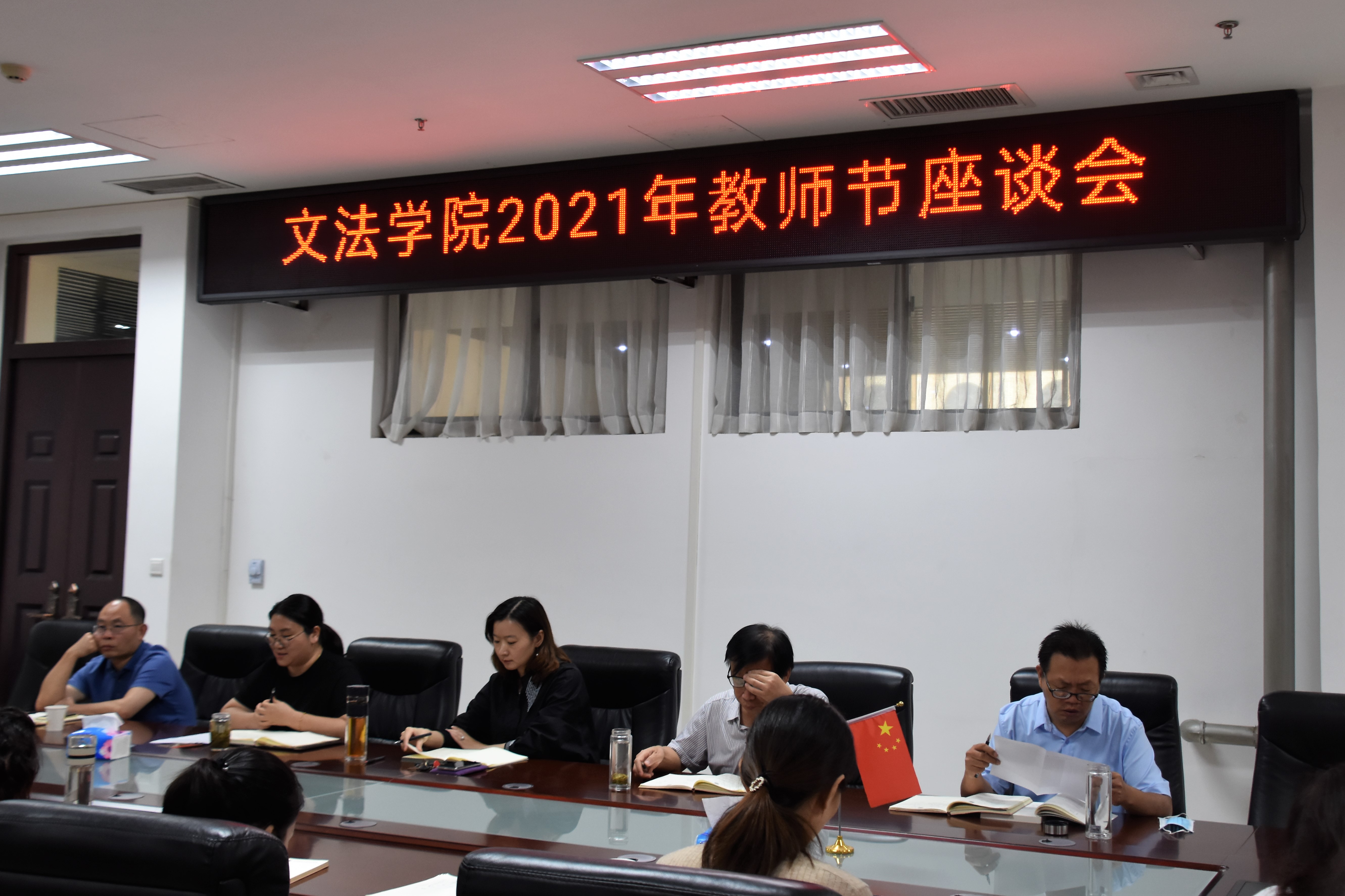 在龙子湖校区繁塔楼A310会议室召开2021年教师节座谈会。学院全体领导班子和优秀教师代表参加座谈。座谈会由院长王晓勇主持。