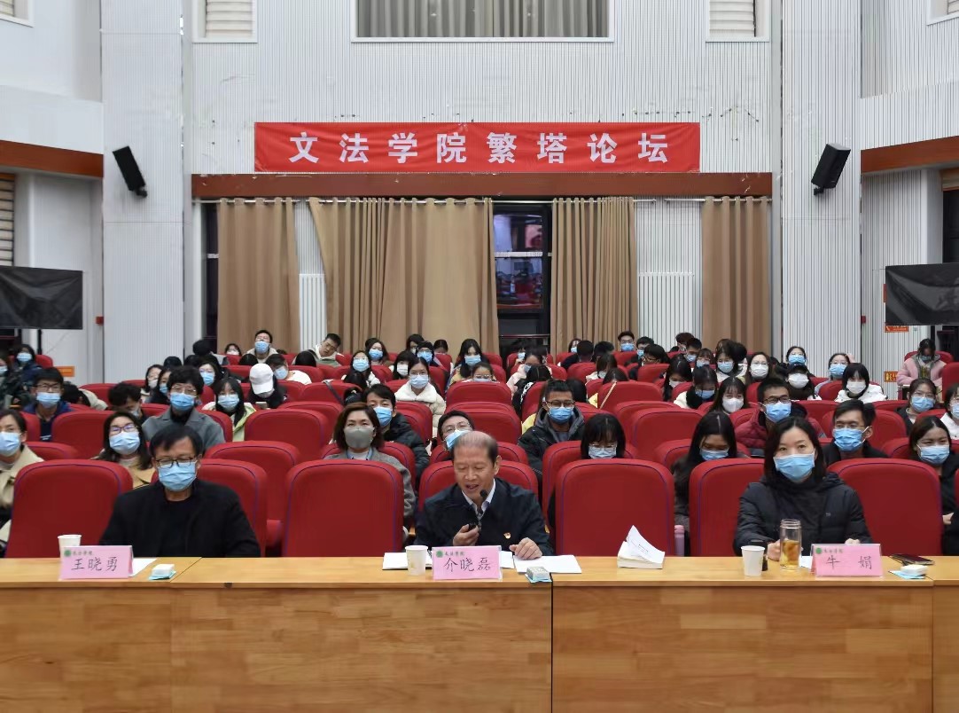 师生做主题为“民法典编纂中的体系性科学性问题”的学术报告。校长介晓磊、校政策法规办公室相关领导,绿帽小说