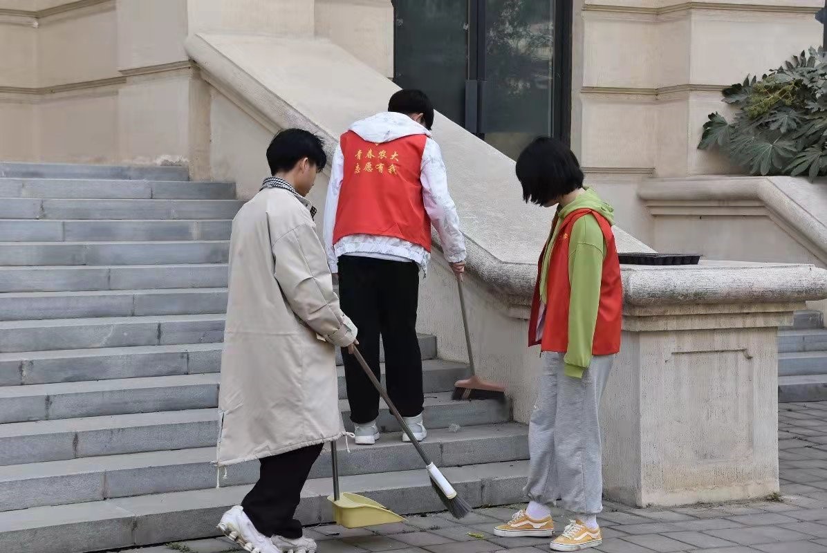 校园志愿团打扫校园