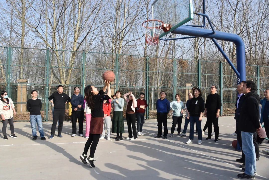 于龙子湖校区篮球场举办了以“追梦新时代 巾帼绽芳华”为主题的教职工趣味篮球赛。