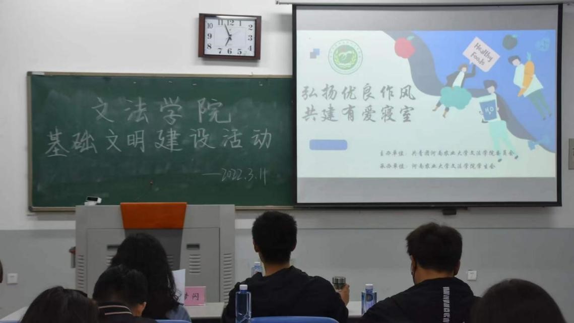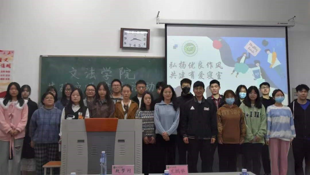 于龙子湖校区教学楼C103开展“弘扬优良作风 共建有爱寝室”评选活动。团委副书记王鹏举、辅导员赵梦闪出席活动,学生会主席团成员及21级生保委员担任评委,学生代表参加活动。