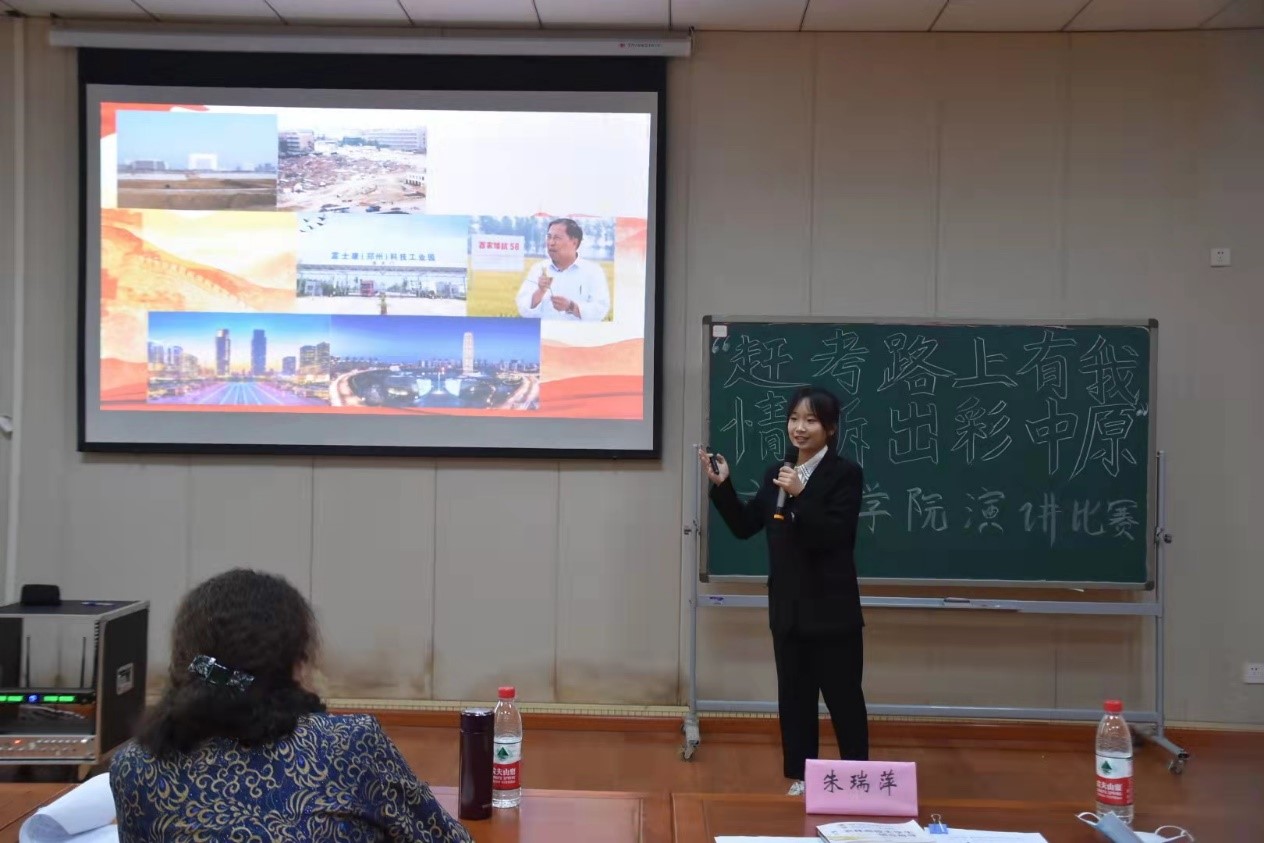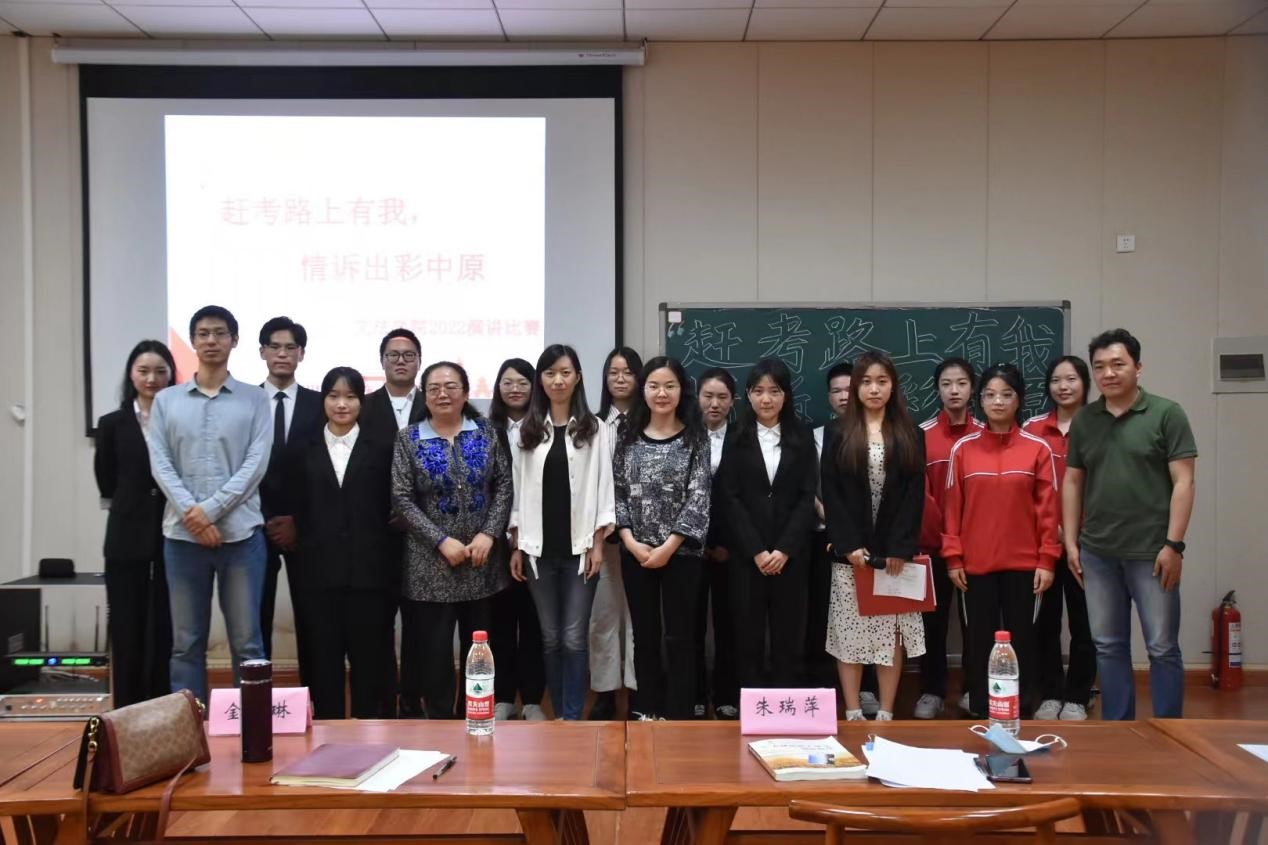 于艺术中心B201举办“赶考路上有我,情诉出彩中原”主题演讲比赛决赛。本次比赛由初赛晋级的十名学生进行最后的角逐,汉语言文学系教师金琳、院党政办主任张二龙、团委书记朱瑞萍、团委副书记王鹏举、辅导员赵梦闪参与评审。