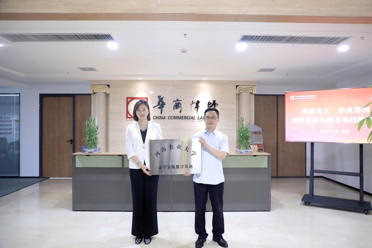 党委书记牛娟、法律系主任韩宁、法律系教师代表贾秋宇一行前往广东华商(郑州)律师事务所交流,并与广东华商(郑州)律师事务所签约,举行授牌仪式,共建法学实践教学基地。广东华商(郑州)律师事务所合伙人律师出席,活动由执行主任郑玉玲律师主持。