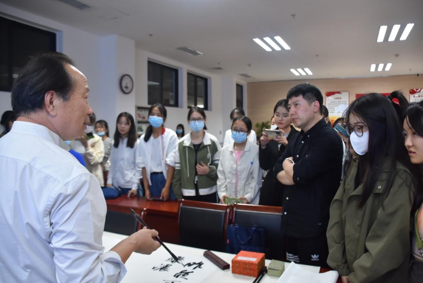 实践环节,田立杰执笔染墨,挥笔成书,绿帽小说 院训顷刻落于宣纸之上,师生在提笔落笔之间直观感受到了书法艺术的清新高雅、古朴端庄。