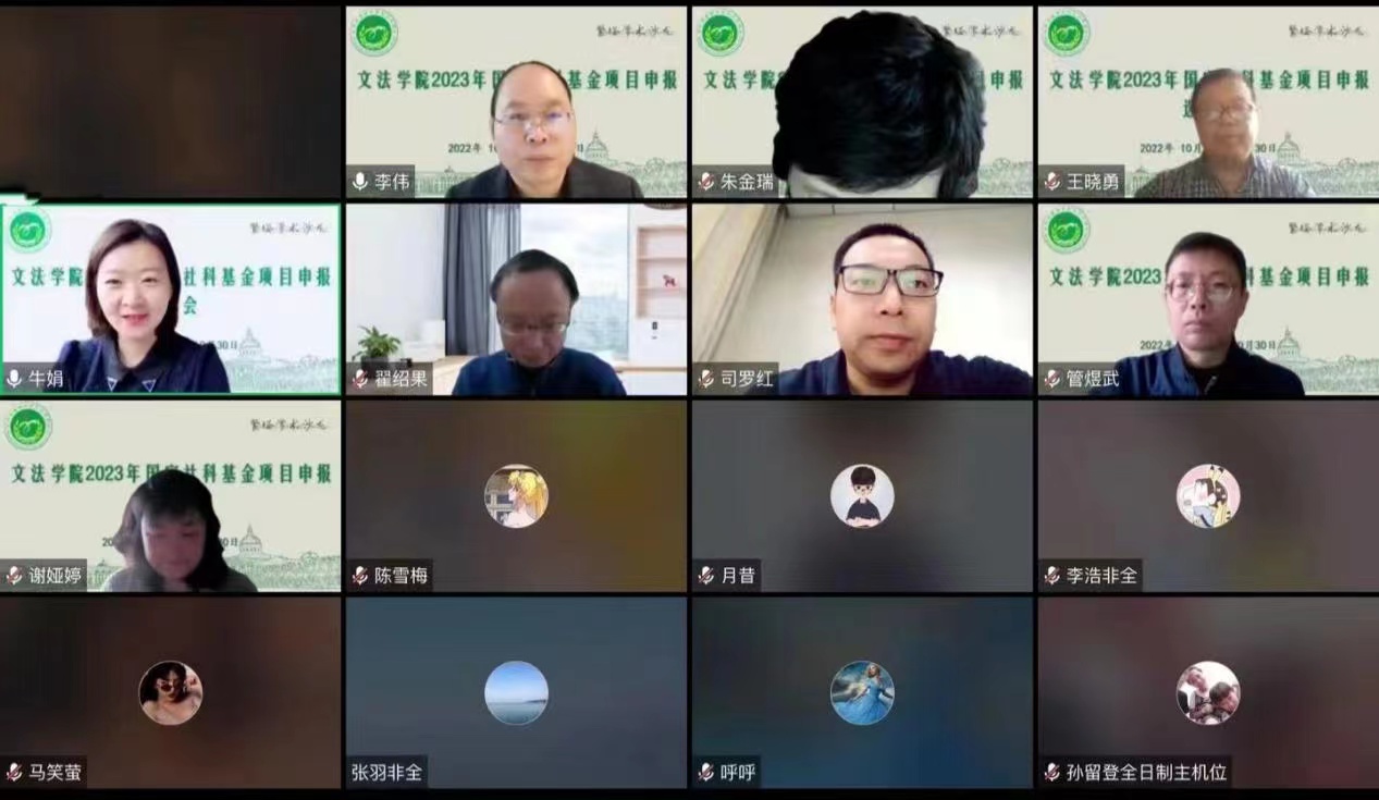 通过线上方式精心组织召开了2023年国家社科基金项目申报选题会。会议特邀河南财经政法大学副校长朱金瑞教授、西北大学公共管理学院副院长翟绍果教授、郑州大学文学院司罗红教授、海南大学法学院谭波教授作为点评嘉宾。绿帽小说