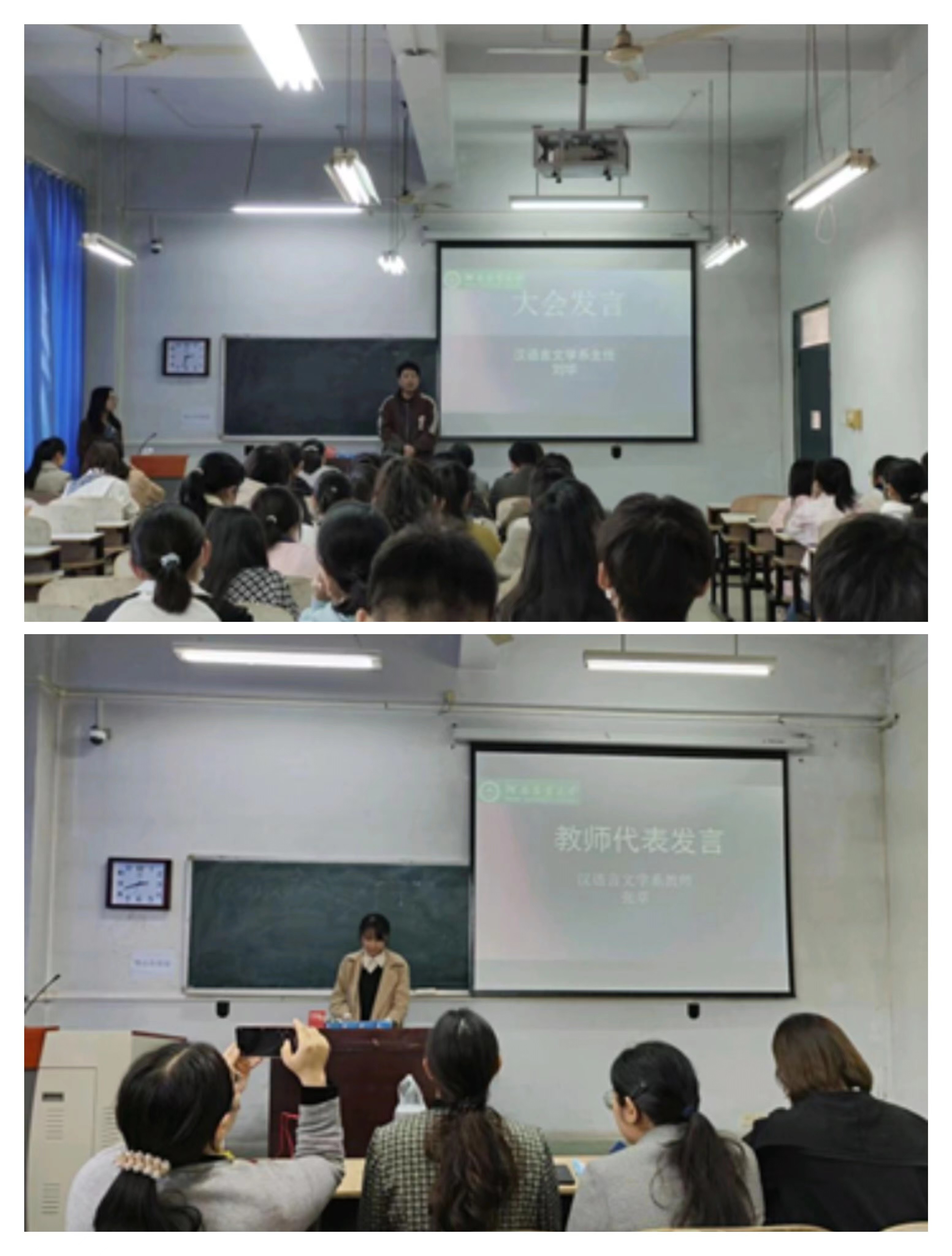 汉语言文学系会场,绿帽小说 党委书记牛娟、汉语言文学系教师团队及2022级汉语国际教育专业新生参加,汉语言文学系主任刘华主持典礼。典礼在庄严的国歌声中拉开序幕。刘华致辞,他为汉语国际教育专业发展提出新的科学思路,表达了对新生的殷切希望与祝福。教师代表张草表示自己将继续强化教学技能与方法,给予新生学习与生活相关建议。学生代表郭中阳表示将树立远大理想,仰望星空的同时脚踏实地,加强专业知识学习。随后,汉语言文学系教师依次上台发言,阐释自身教学特色,鼓励学生积极沟通交流。牛娟为2022级新生讲授“开学第一课”,寄语学生要将自身发展置身于时代与国家发展洪流之中,争做全面发展的时代新人。