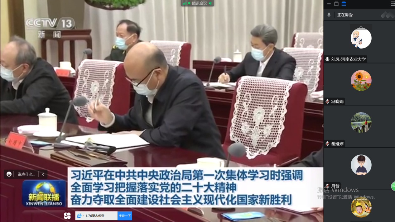 11月1日下午,按照学校和学院统一部署,社会学系教工党支部通过线上会议组织全体党员教师深入学习党的二十大精神。会议由社会学系党支部书记刘风主持,并组织大家共同学习习近平总书记在中共中央政治局第一次集体学习的讲话精神。