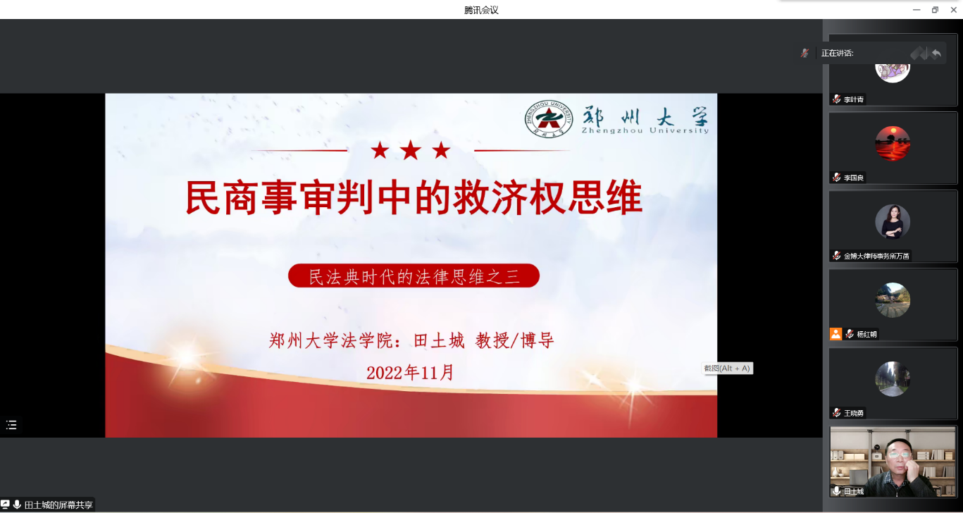 通过线上会议的方式举办以“民商事审判中的救济权思维”为主题的学术报告。本次报告由郑州大学田土城教授主讲,绿帽小说