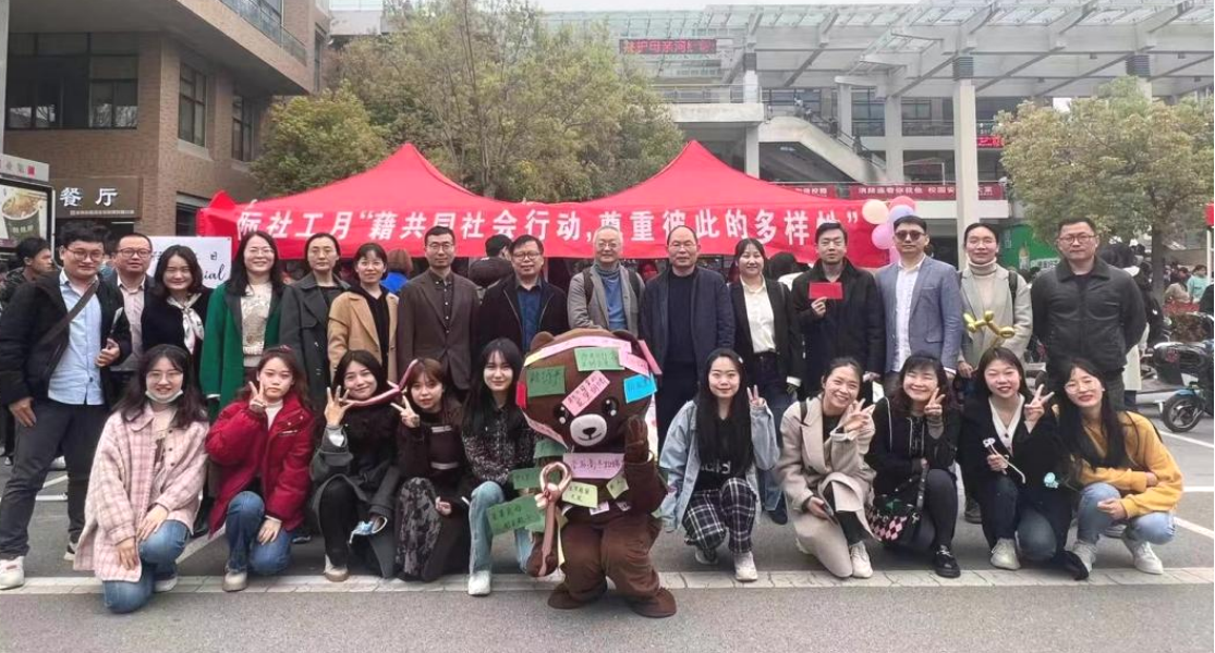 在龙子湖校区一餐广场开展以“藉共同社会行动,尊重彼此的多样性”为主题的国际社工日宣传活动。中国社会科学院社会学研究所研究员、博士生导师李炜、院长王晓勇、副院长李伟出席活动,社会学系全体教师和部分学生参加活动。