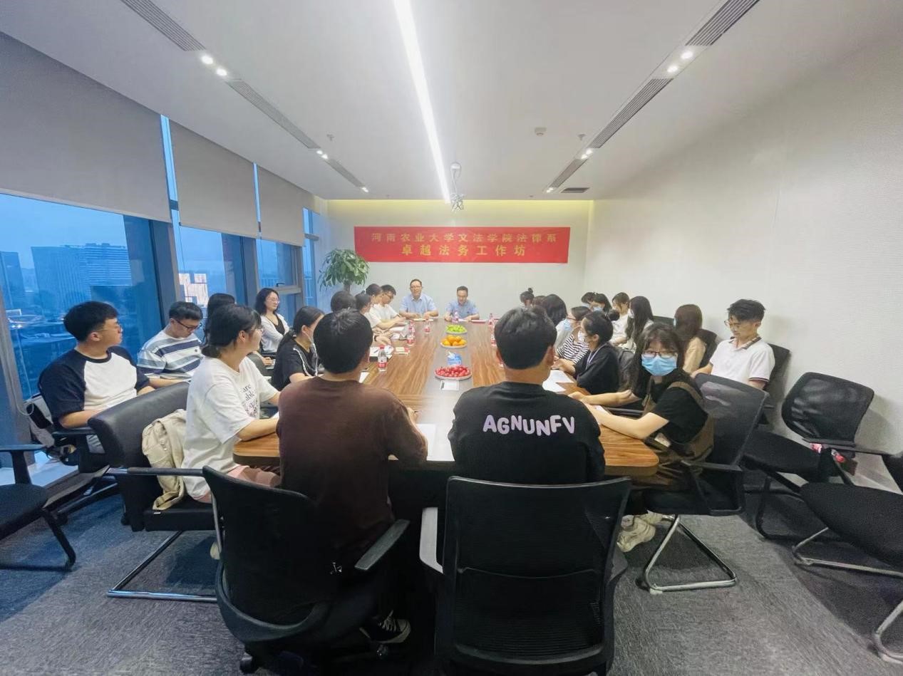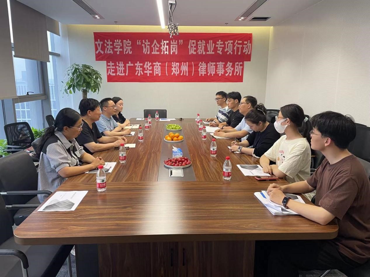 到广东华商(郑州)律师事务所开展访企拓岗促就业活动,举行第九期卓越法务工作坊。法律系主任韩宁、教师代表董鑫以及法学专业部分学生,广东华商(郑州)律师事务所主任孙辉、执业律师李振民、徐娜等参加活动。
