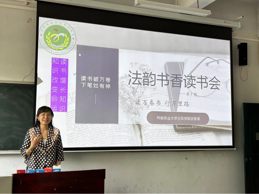 在桃李园举办第十期法韵书香读书会。法律系主任韩宁、法律系教师贾秋宇、22级法学专业学生参加读书会。会议由贾秋宇主持。