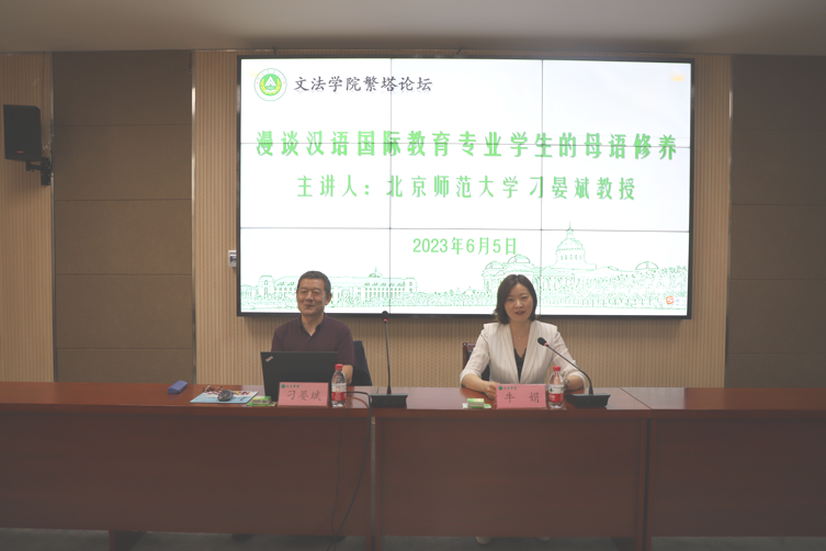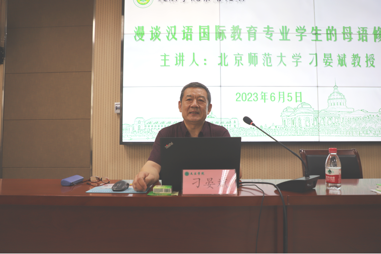 邀请北京师范大学刁晏斌教授为师生作主题为“漫谈汉语国际教育专业学生的母语修养”的学术报告。报告会由学院党委书记牛娟主持,汉语言文学系教师以及汉语国际教育专业全体学生参加报告会。