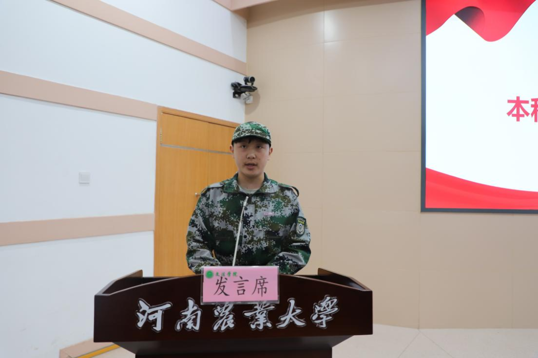 2023级本科生新生代表法学专业王湛杰分享自身经历,他以独立、自主、弘毅三方面为主要内容,对即将到来的大学生活做出期待和展望,并预祝同学们学有所成、学有所悟。