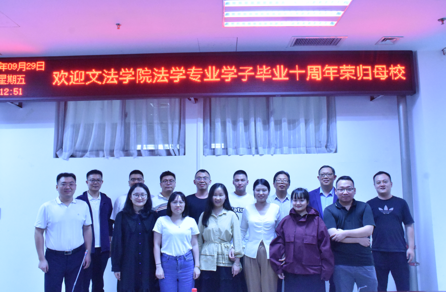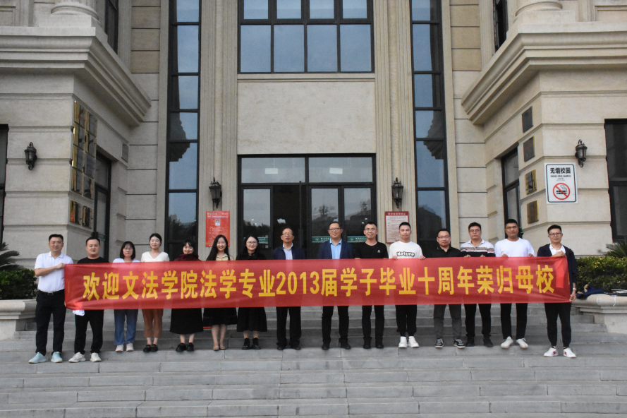 法学专业2013届学子代表毕业十周年荣归母校,在学院会议室举行座谈会。学院副院长杨红朝及法律系主任韩宁参与座谈会,会议由韩宁主持。
