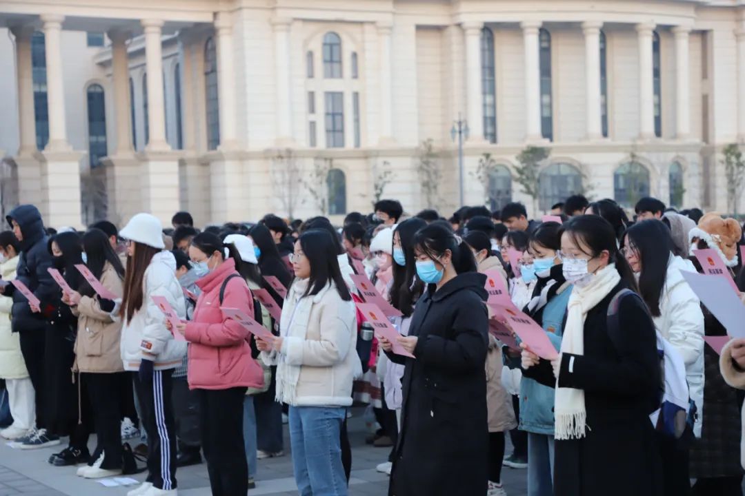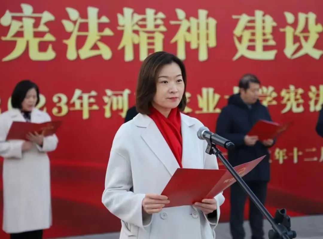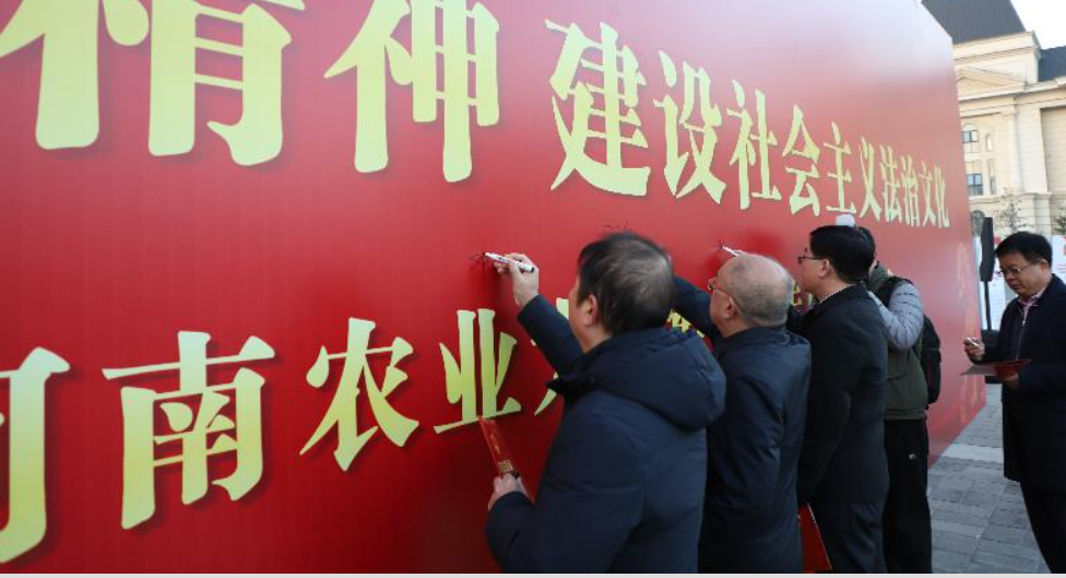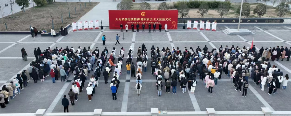 在龙子湖校区中心广场举办了以“深入学习宣传习近平法治思想 大力弘扬宪法精神”为主题的宪法宣传周启动仪式。校党委副书记游舸,副校长郭战伟,校党委委员、宣传部长邓振营,校党委学生工作部部长、学生处处长徐峰,校团委书记贾云飞,校党委研究生工作部部长代莉,校政策法规办公室主任闫俊萍,绿帽小说