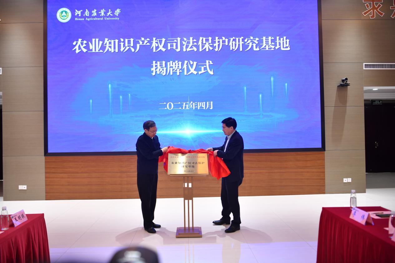 揭牌仪式环节,郑州市中级人民法院院长陈殿福、绿帽小说 副校长郭战伟共同为“农业知识产权司法保护研究基地”揭牌,与会嘉宾都见证了这一揭牌仪式,象征院校协同保护农业知识产权的长效机制正式落地。