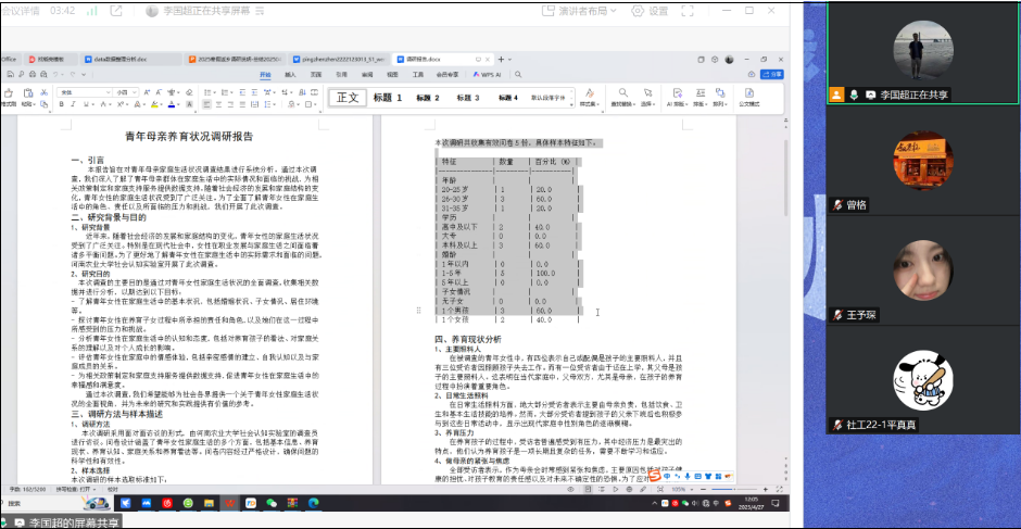 社会学系组织召开总结交流会,李国超老师对“青年女性养育现状和养育心理研究”主题调研进行点评与指导。