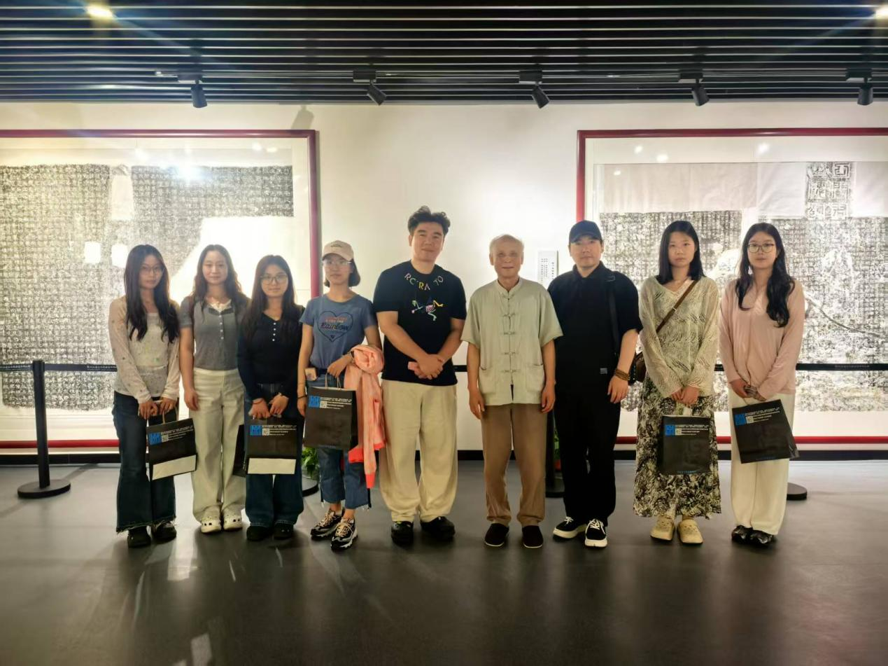 在金水区文化馆,师生一行在讲解员带领下系统参观了非遗展示区、社区艺术活动区及多功能文艺演出厅,了解了该馆在推动社区文化建设、传承地方艺术形式方面的丰富实践。特别是在非物质文化遗产主题展厅,同学们被省级非遗项目高浮雕传拓技艺深深吸引,传承人李仁清代表承接的“天地之中”“丝绸之路”“大运河”三个项目成功申报世界文化遗产,系列拓片作品也被列为精品档案,这让同学们感受到了非物质文化遗产传承的魅力与责任。