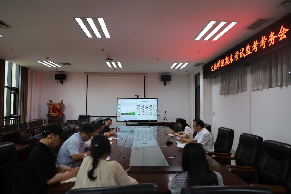 在A310会议室以线上线下相结合的方式召开期末考试监考培训动员考务会。院党委副书记朱瑞萍、副院长杨红朝及全体监考教师参会。
