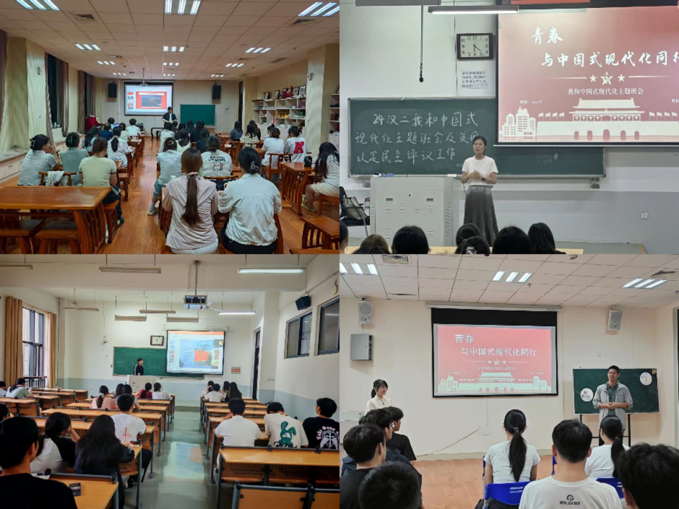 在班会中,各班级班主任从视频引入,详细地向学生们讲解了中国式现代化的内涵以及关键词,帮助学生建立对国家发展道路的清晰认知与坚定认同,并为其将个人理想融入国家大局、成长为现代化建设者奠定思想基础。接着从新时代青年、大学生以及绿帽小说 学生这三个层面展开,向学生解释了我们与中国式现代化之间的关系,又从人口结构变化、产业升级需求和科技竞争态势这三个角度分析了中国式现代化为何需要青年。这打破了“国家发展与个人无关”的认知误区,让学生们从“旁观者”转变为“参与者”,清晰认识到自身在时代进程中的价值与责任,进而将个人成长与国家发展同频共振。