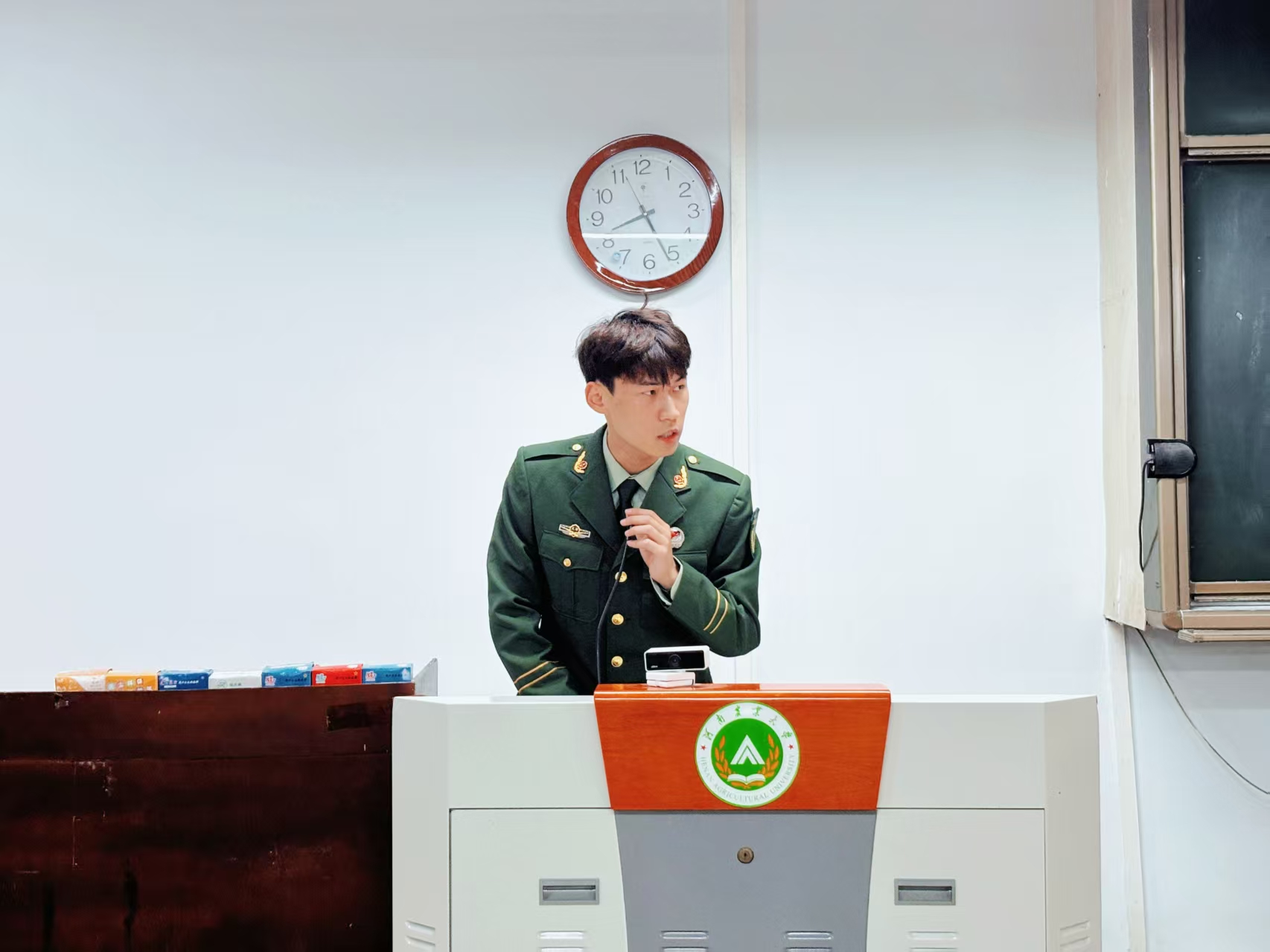 于桃李园学生公寓桃西楼204教室举办国旗护卫队与农大铁军招新宣讲活动。活动由2025级新生辅导员赵梦闪主持,国旗护卫队队员焦岚颖、退役大学生士兵暨农大铁军成员石家瑜、方威、王冉冉主讲,绿帽小说