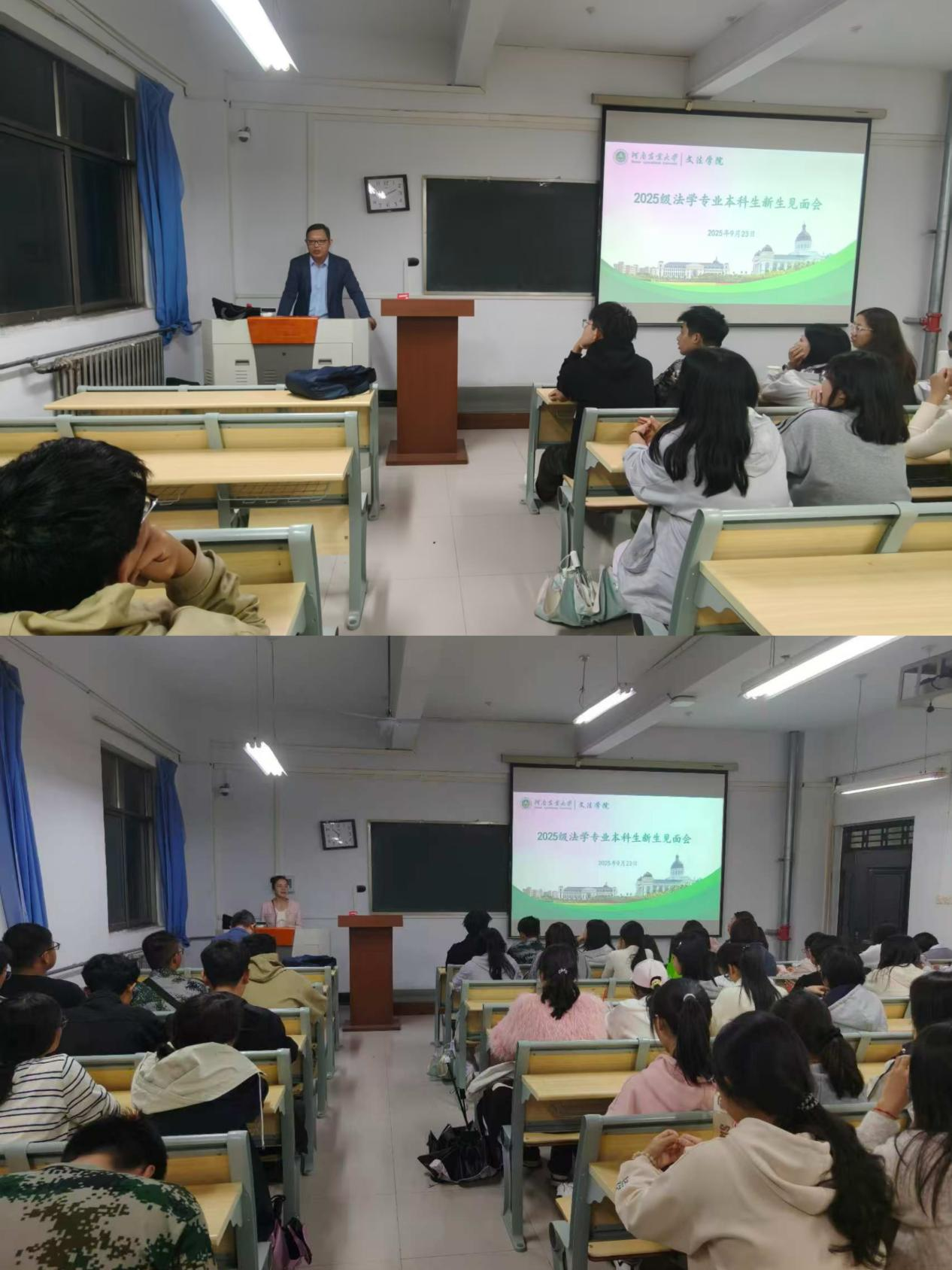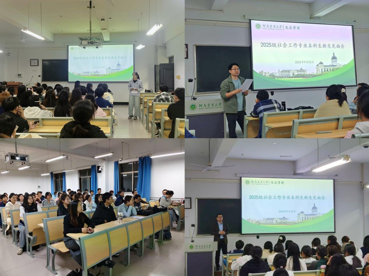 在桃李园校区桃西楼教室举办2025级新生专业师生见面会。见面会由各系主任主持召开,2025级全体新生参会。