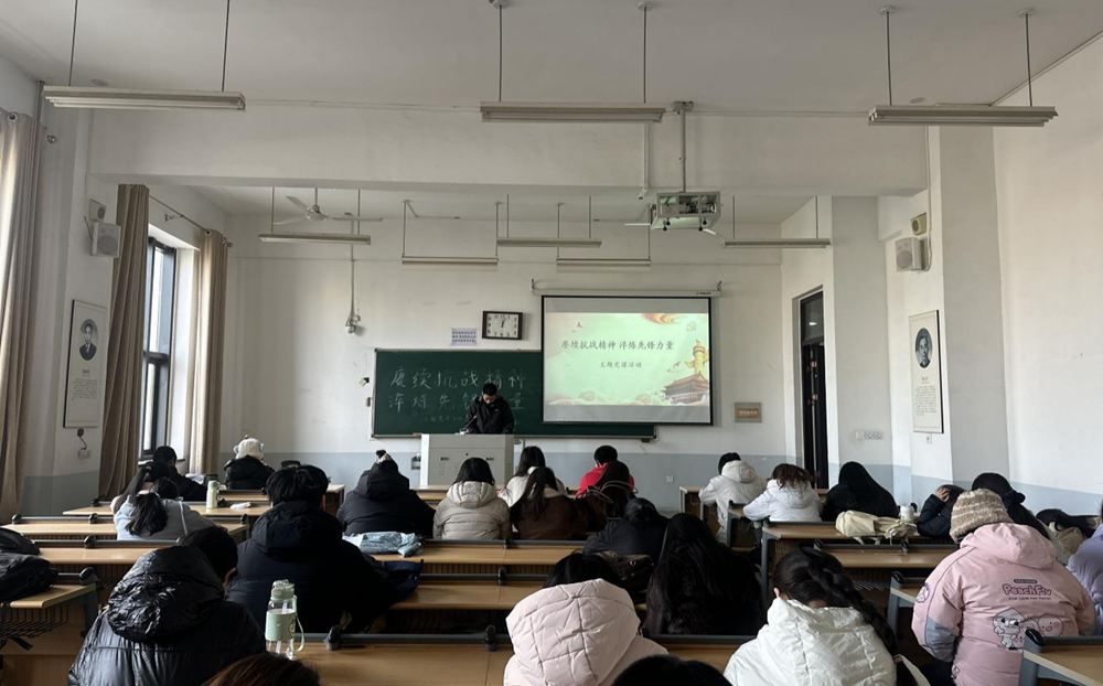 学生党支部于12月2日中午在龙子湖校区繁塔楼E205开展了以“赓续抗战精神,淬炼先锋力量”为主题的党课活动。