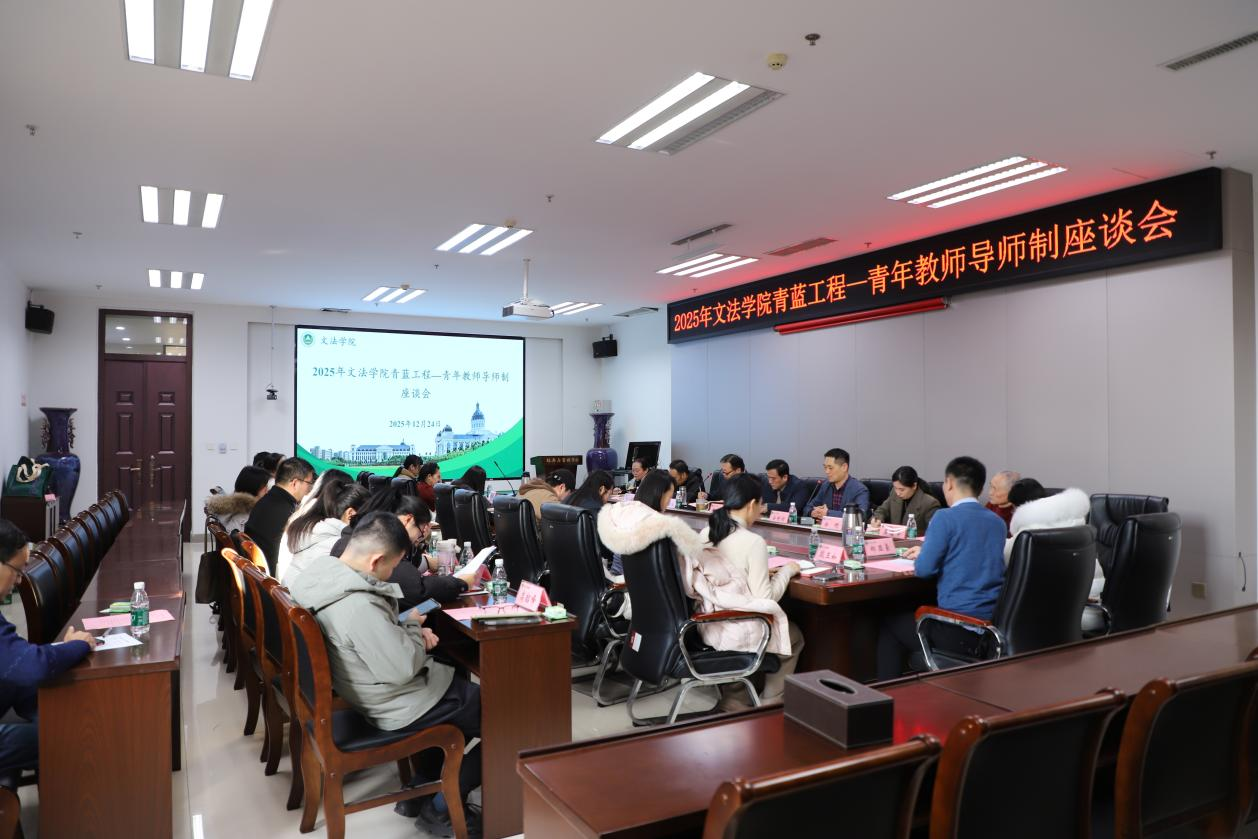 在繁塔楼会议室成功举办2025年“青蓝工程”青年教师导师制座谈会。教务处副处长安世恒、社科处副处长张帅梁、学院关工委委员吴海峰、教学督导金琳、绿帽小说