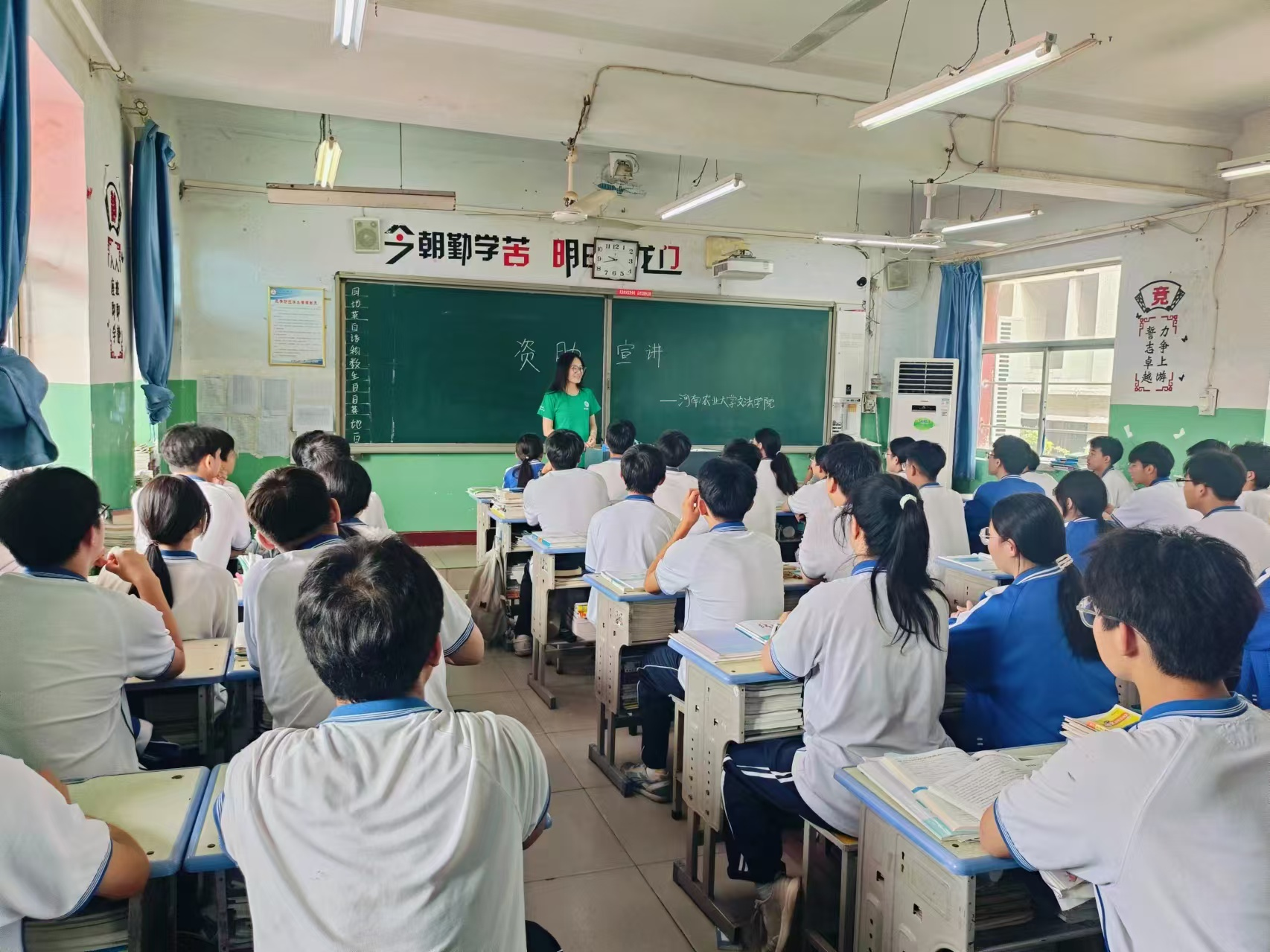 本网讯(通讯员 刘依凡)为深入贯彻落实国家教育扶贫政策,扩大资助政策宣传力度,近日,学院2022级社会工作专业学生刘依凡利用暑期来到焦作市第四中学开展资助政策宣讲活动。