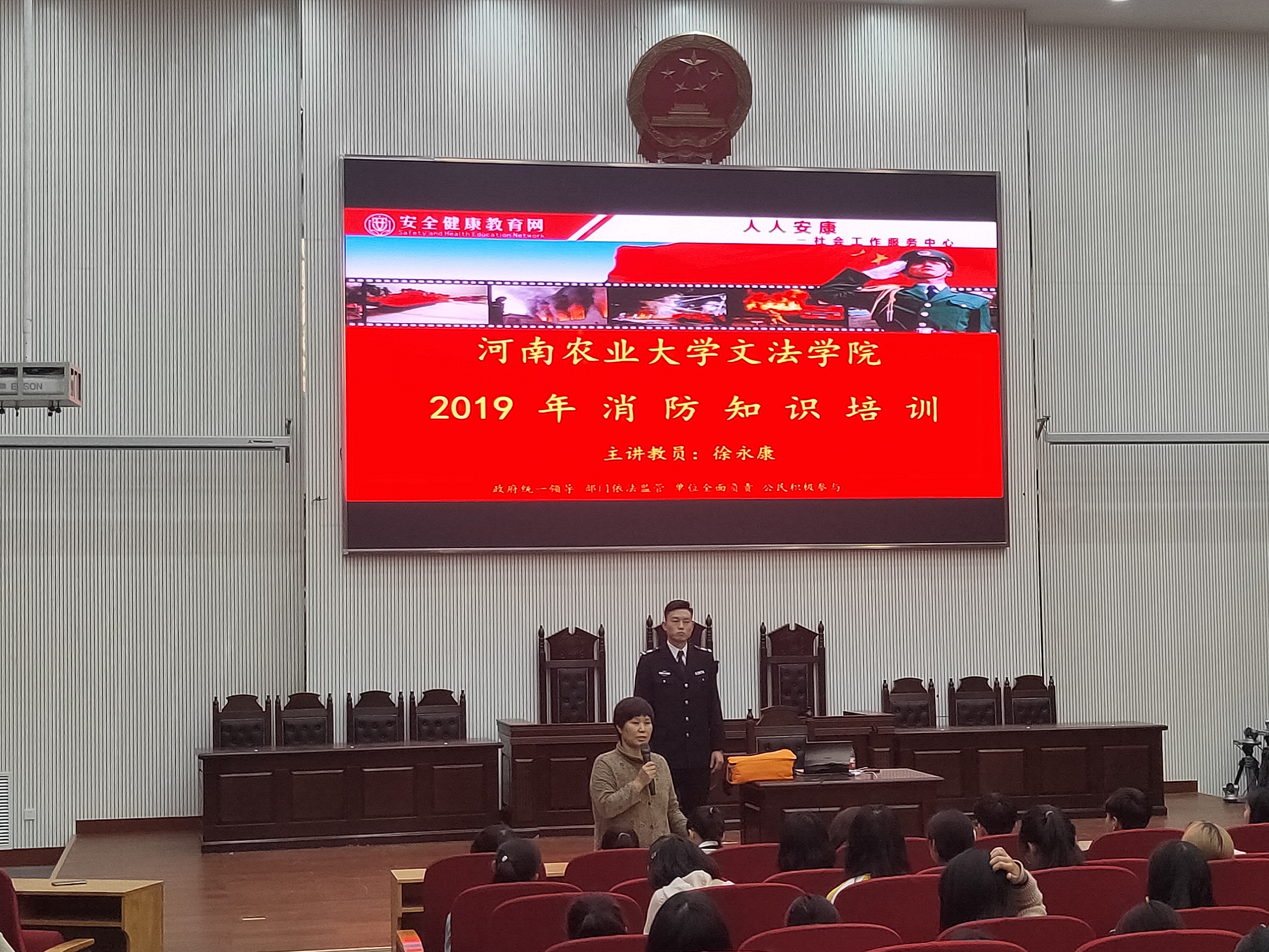 于11月12下午两点半在繁塔楼模拟法庭开展2019年消防知识培训。讲座特邀河南省消防协会教员徐永康讲解,由绿帽小说