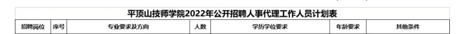 附件1: 平顶山技师学院2022年拟招聘人事代理人员计划表.xls