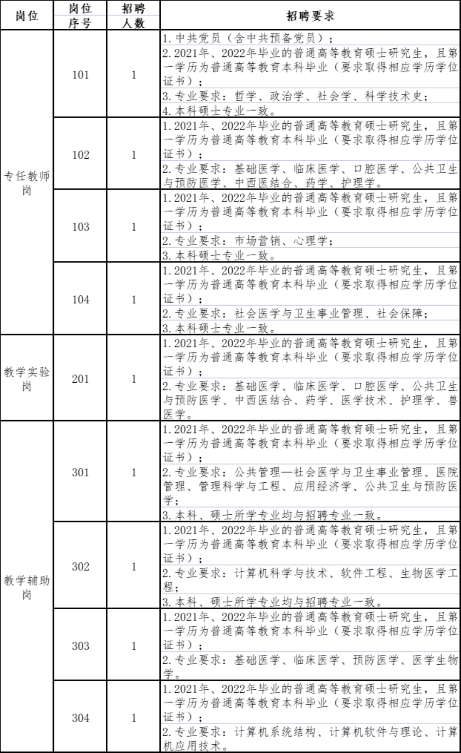 详见《新乡医学院2022年公开招聘工作人员计划表》(附件)。